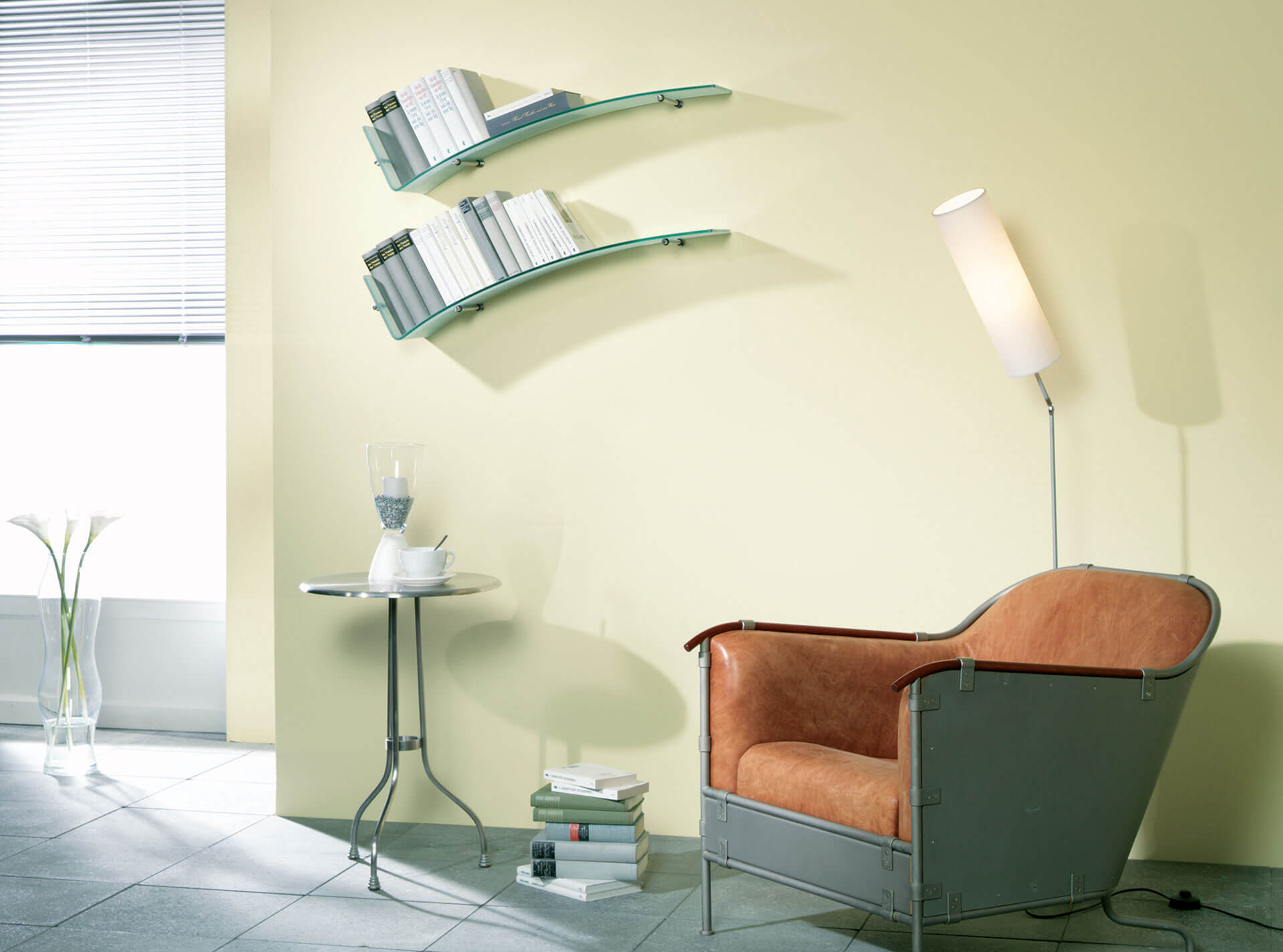A lebegő polcok tároló- és bemutatóteret biztosítanak anélkül, hogy helyet foglalnának a padlón, így ideálisak kis helyiségekbe is.
